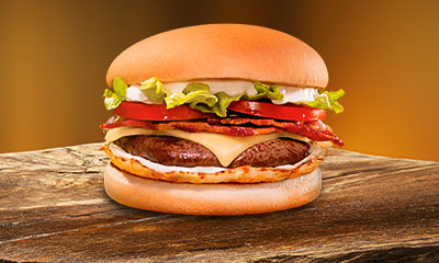 PÃO BRIOCHE, HAMBURGUER 50G, QUEIJO MUSSARELA, ALFACE, TOMATE, BACON, MOLHO ESPECIAL
