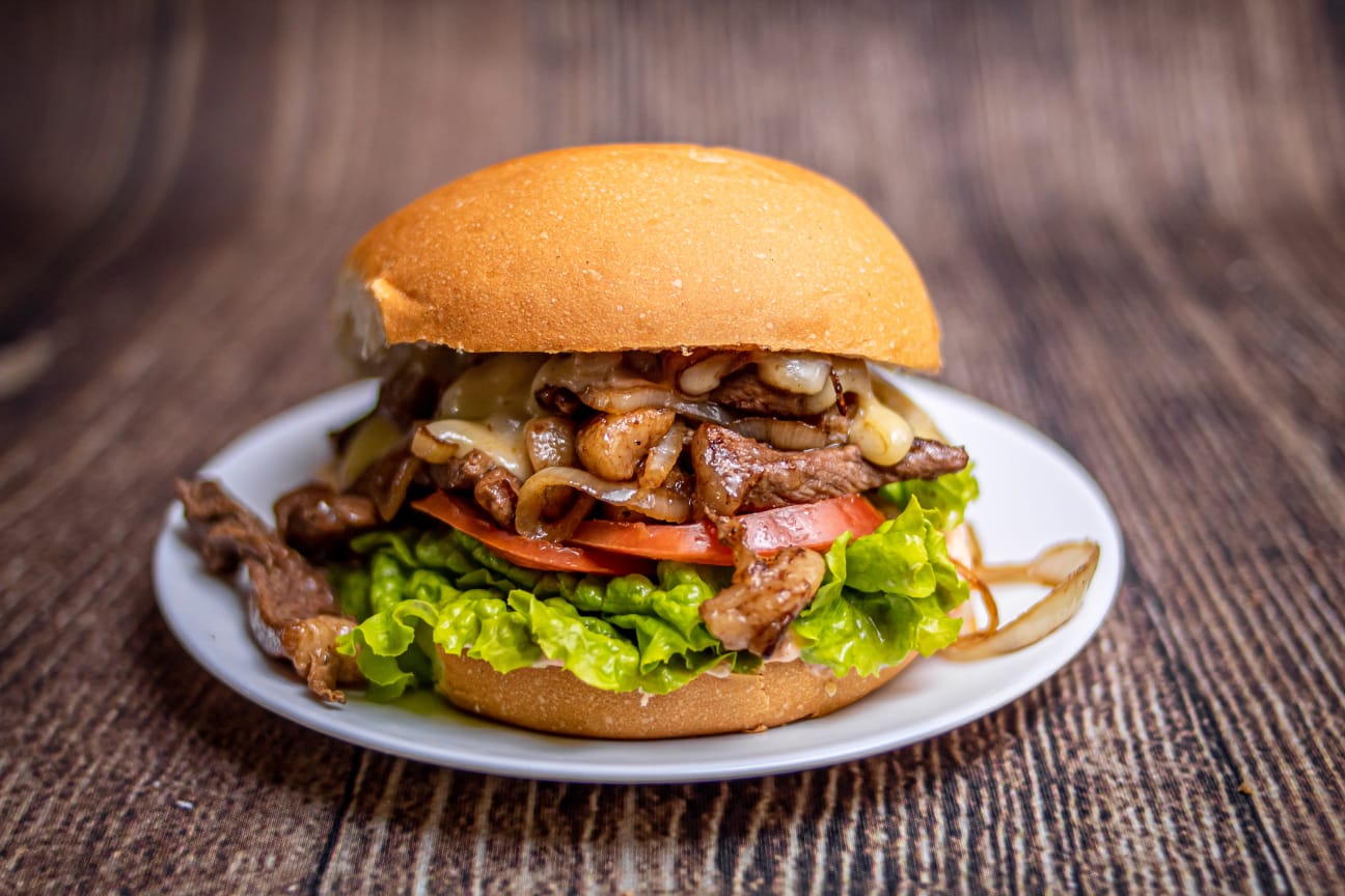 PÃO BRIOCHE, HAMBURGUER 50G, QUEIJO MUSSARELA, ALFACE, TOMATE, ALCATRA, MOLHO ESPECIAL
